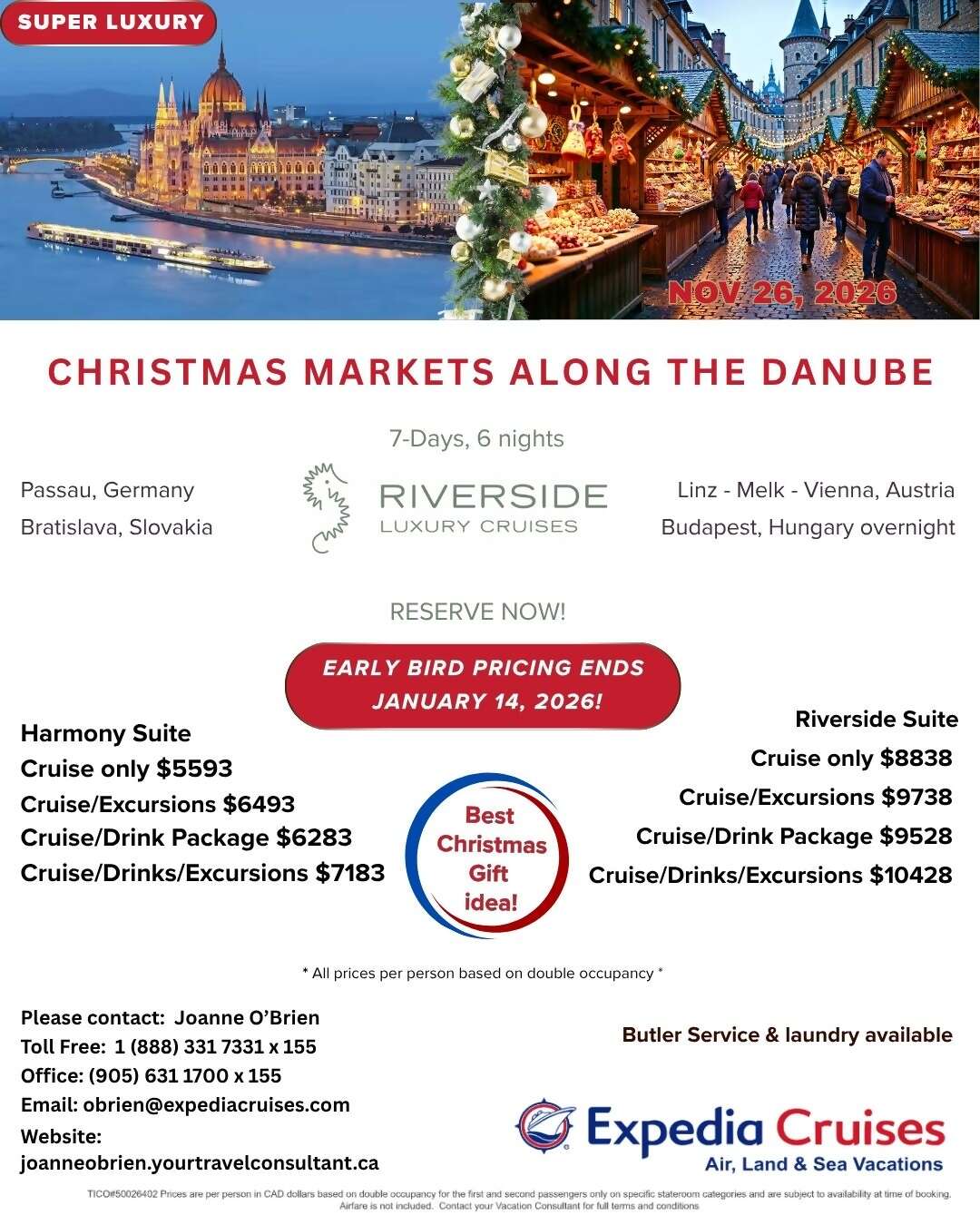 from $6,492.00 CAD per person based on double occupancy