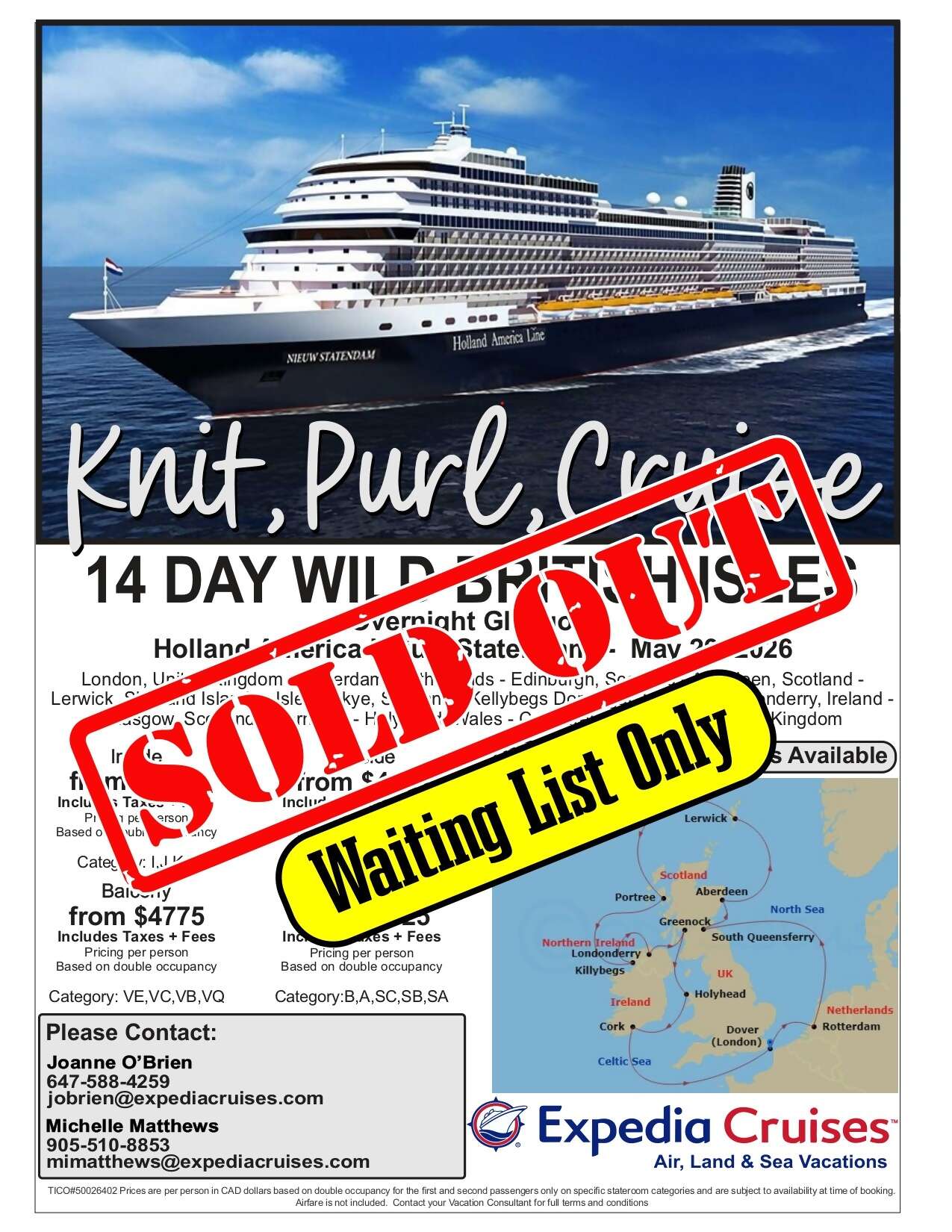 TICO#50026402 Prices are per person in CAD dollars based on double occupancy for the first and second passengers only on specific stateroom categories and are subject to availability at time of booking. Airfare is not included. Contact your Vacation Consultant for full terms and conditions.