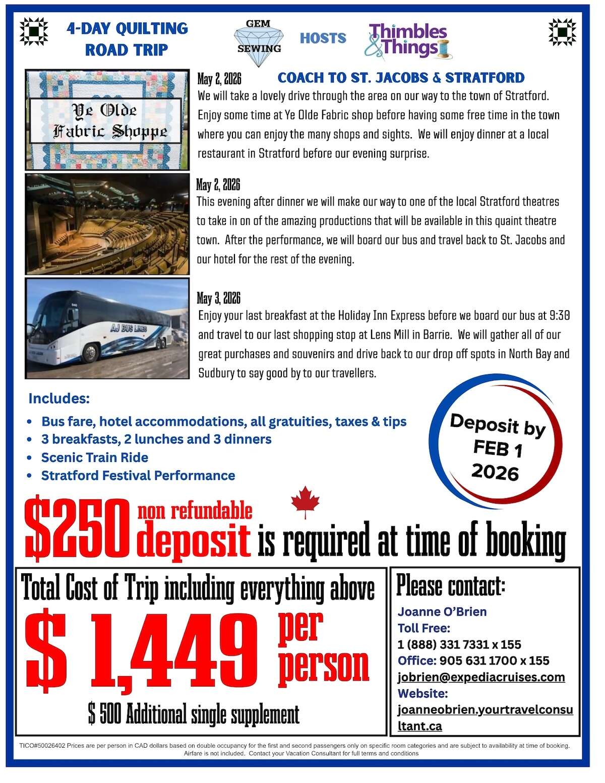 TICO#50026402 Prices are per person in CAD dollars. Contact your Vacation Consultant for full terms and conditions